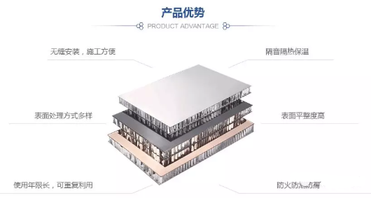 表板采用拉絲不銹鋼板或者鏡面不銹鋼板,背板采用鍍鋅鋼板,芯材采用鋁蜂窩芯,經過專用粘合劑復合而成。它的外觀很美觀,使其在建筑應用以及室內裝飾的各種表面加工方面得到廣泛流行。
